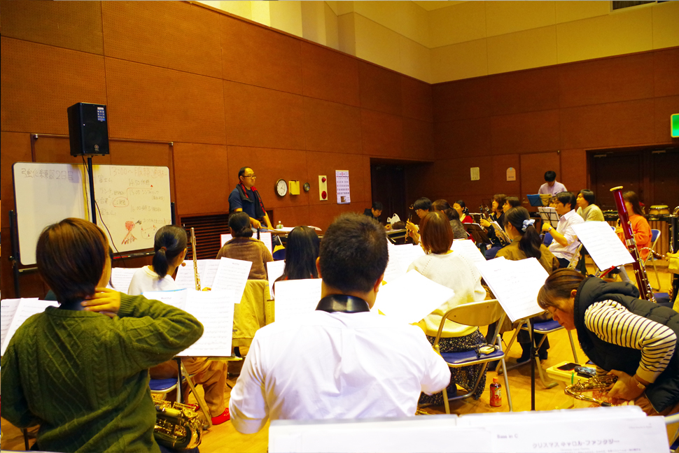 練習は土曜日(夕方)/日曜(午後)が基本となっており、施設の予約状況によって練習日が確定します。また演奏会が近づきますと1日練習等も行っております。